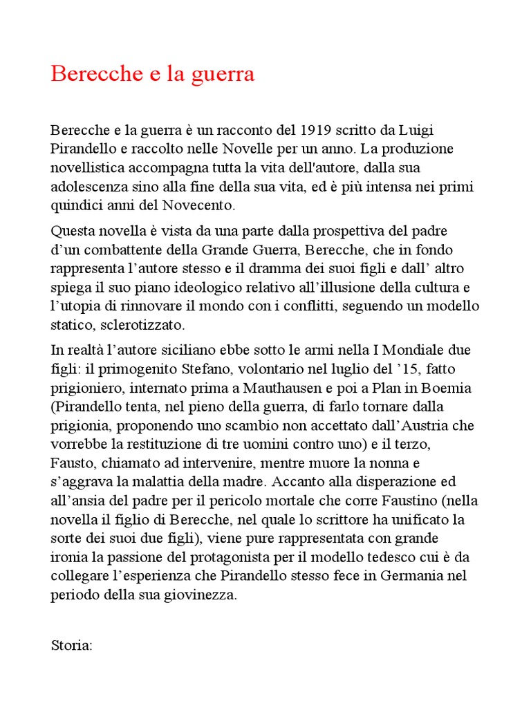 Berecche e la guerra è un racconto del 1919 scritto da Luigi
