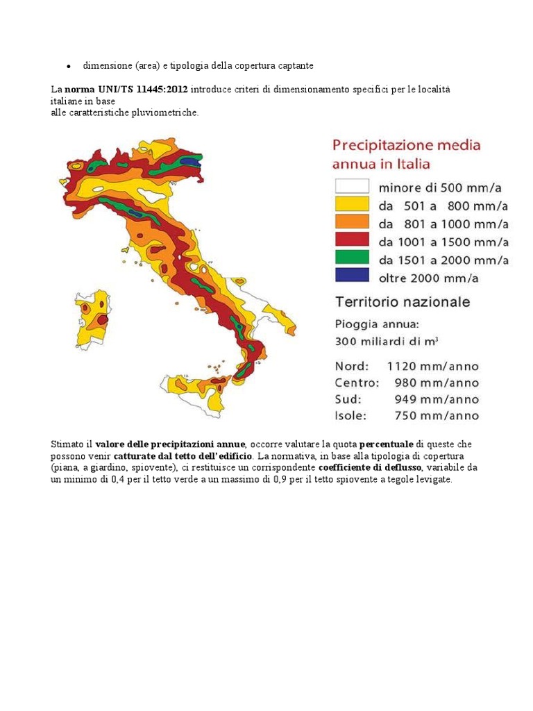 raccolta) x(coefficiente di deflusso)] possiamo ottenere il valore dell’apporto di acqua piovana che