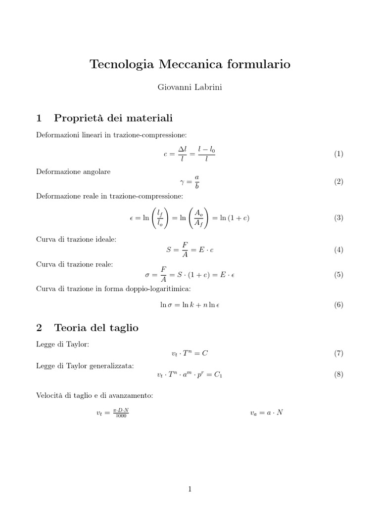 Tecnologia Meccanica formulario