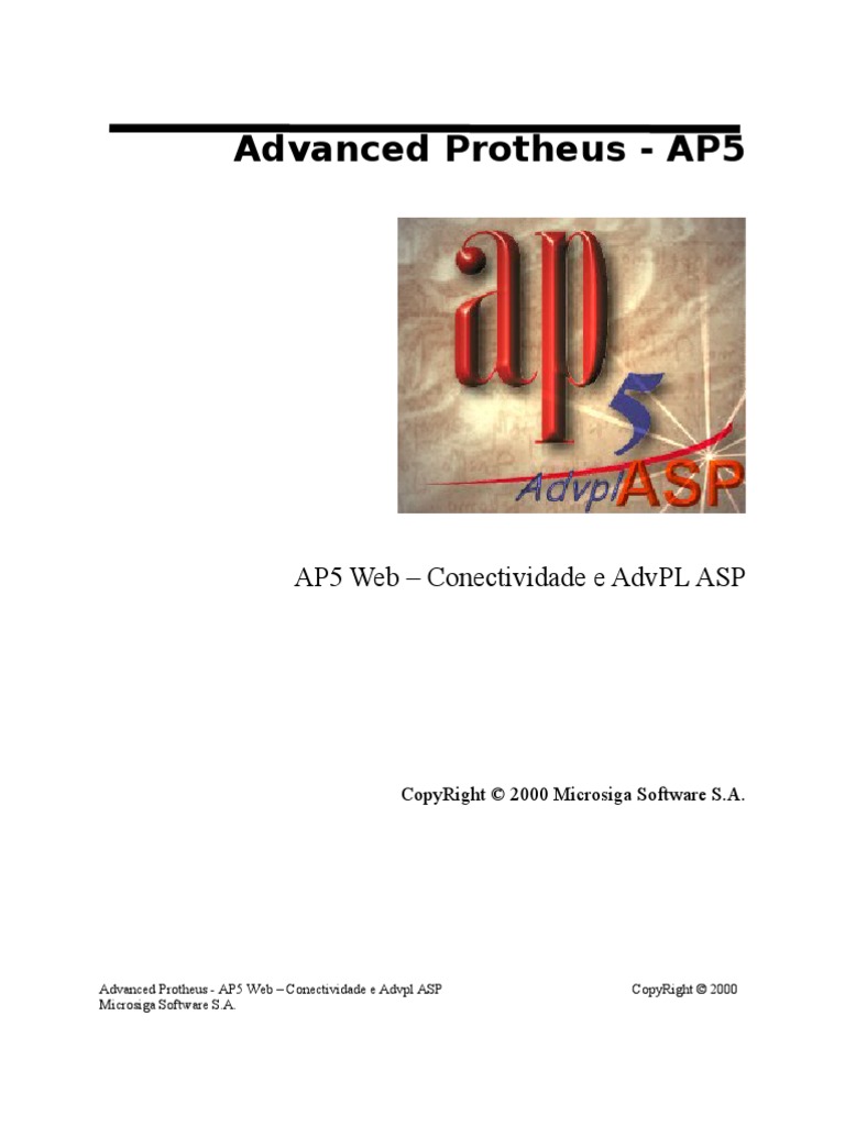 Advanced Protheus - AP5 Conectividade e Advpl ASP 20 CopyRight 2000 Release A Microsiga Software S.A.
