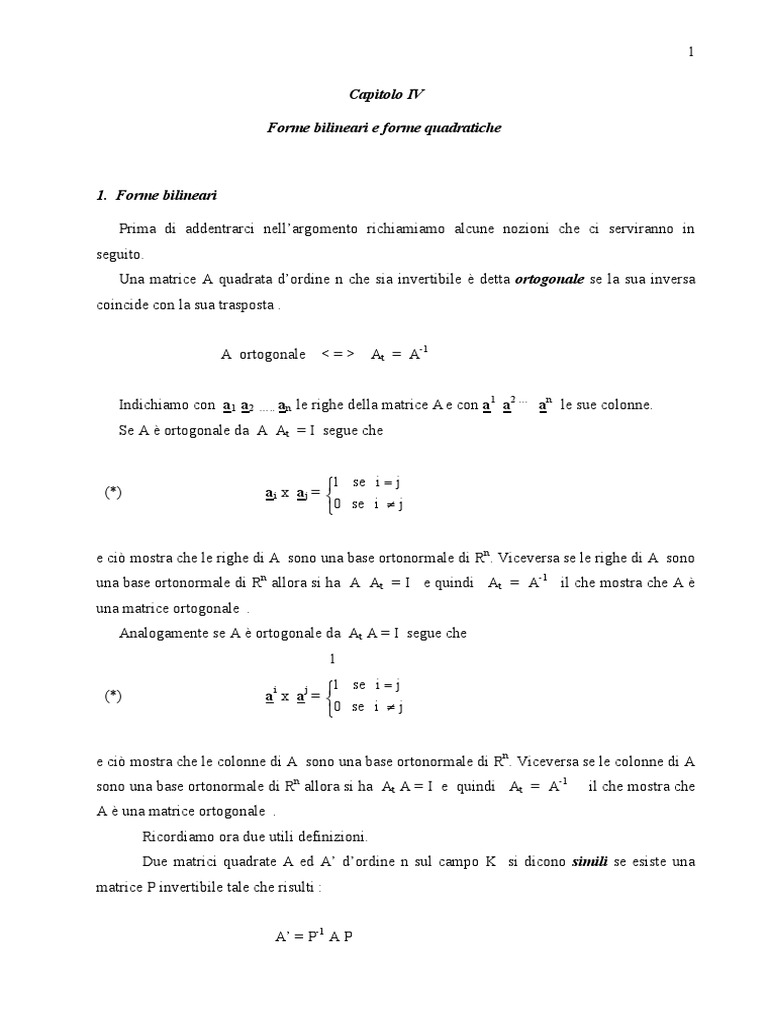 (Una forma bilineare simmetrica è anche detta : prodotto scalare).