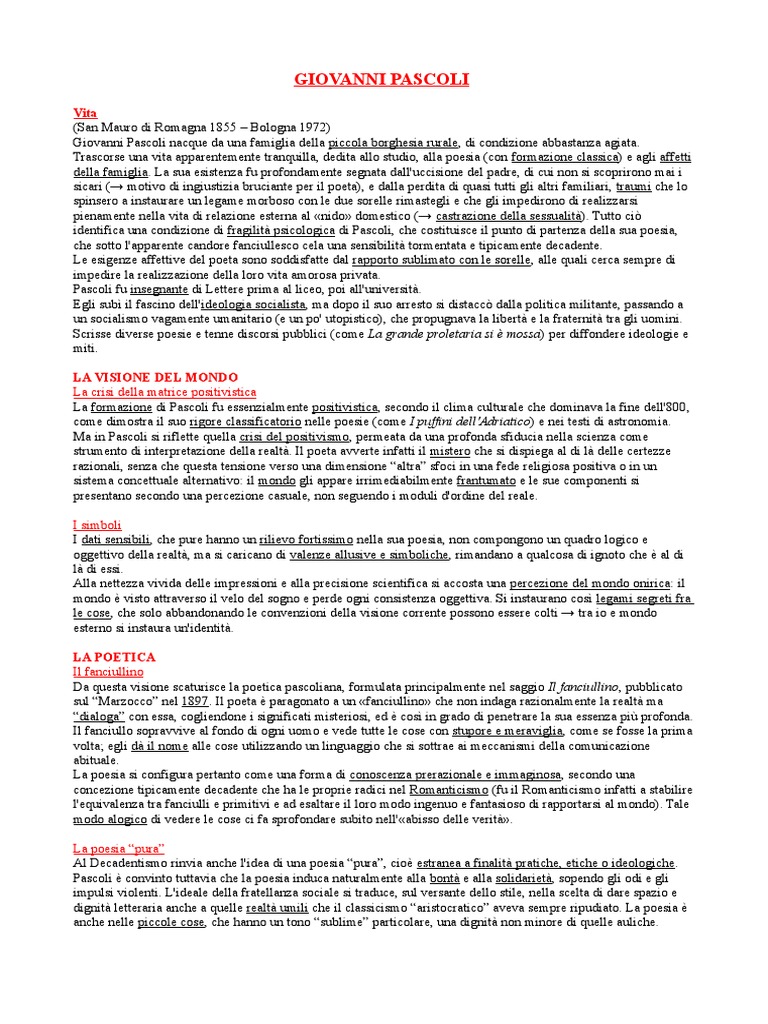 Pascoli è il primo autore decadente in poesia e introduce soluzioni formali molto innovative, che aprono la strada