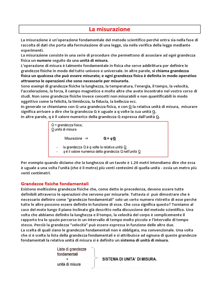 La misurazione è un'operazione fondamentale del metodo scientifico perché entra sia nella fase di
