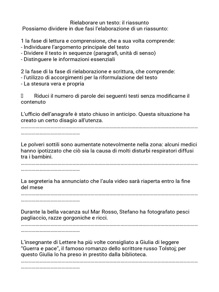 Possiamo dividere in due fasi l’elaborazione di un riassunto: