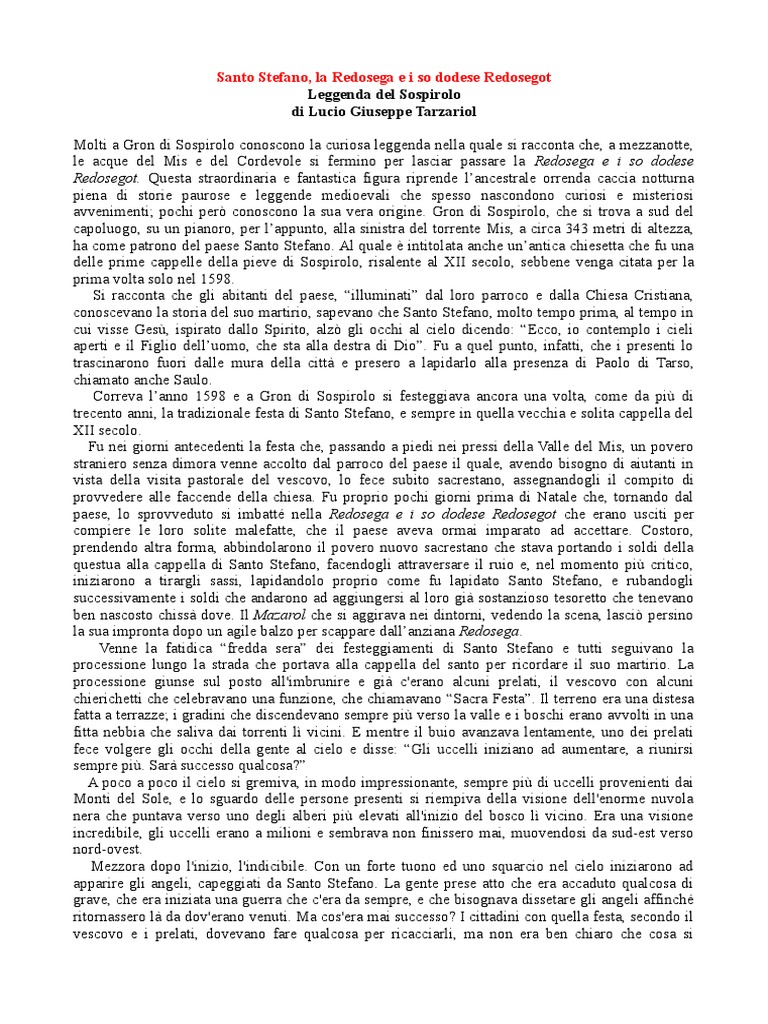 Santo Stefano, la Redosega e i so dodese Redosegot