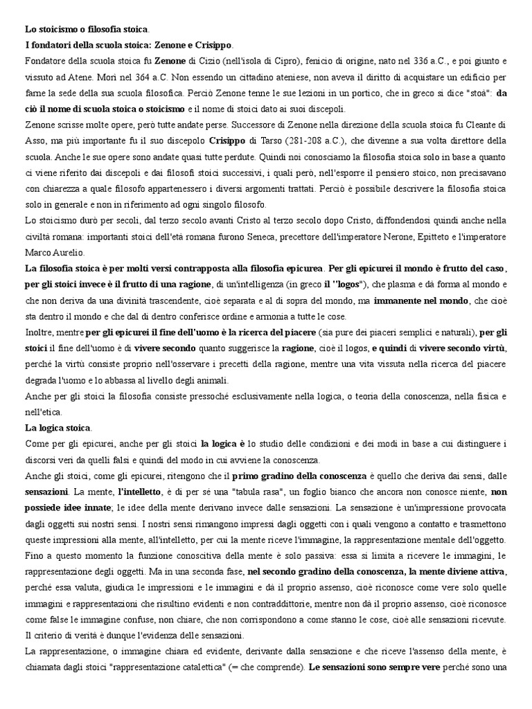 scuola. Anche le sue opere sono andate quasi tutte perdute. Quindi noi conosciamo la filosofia stoica solo in base a quanto