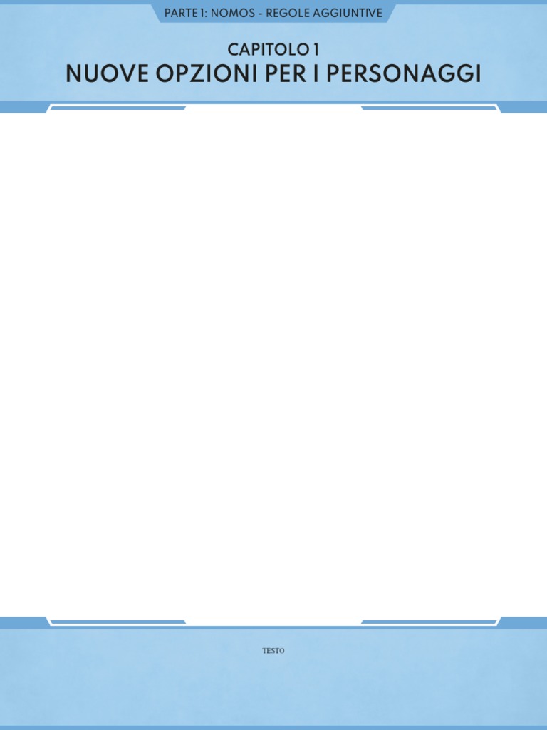 8 CAPITOLO 1: NUOVE OPZIONI PER I PERSONAGGI