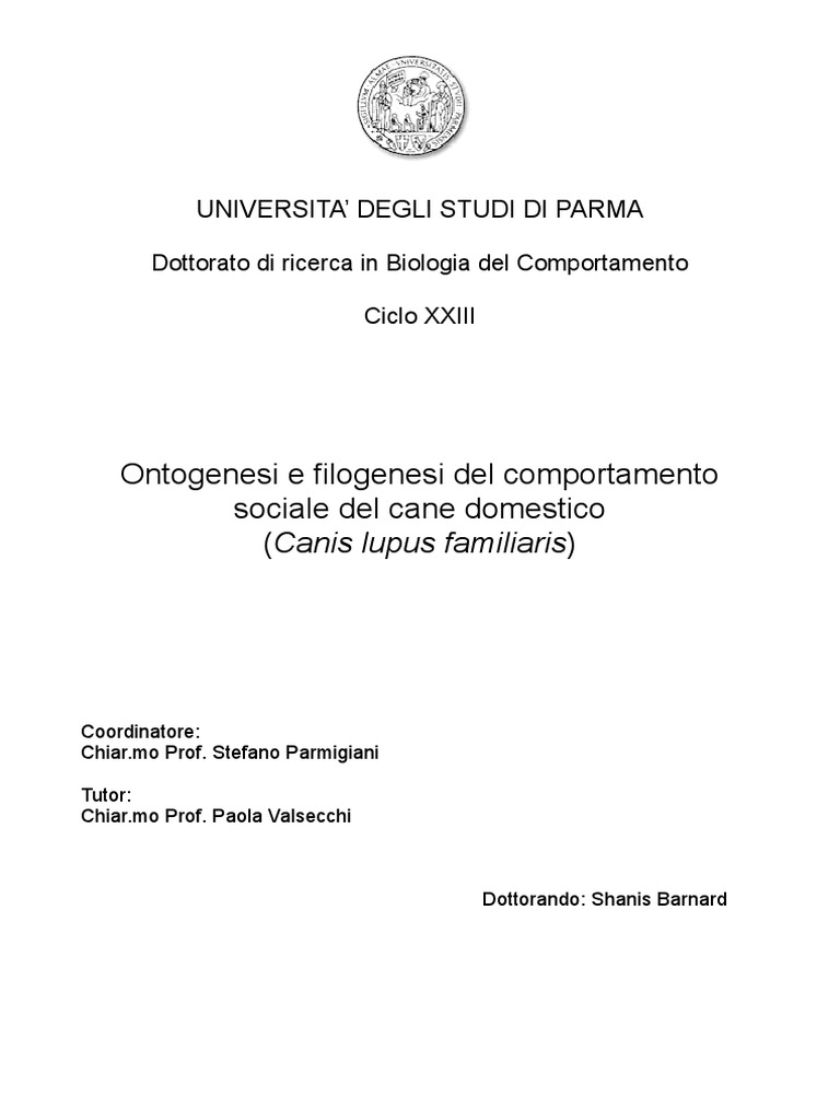 Ontogenesi e Filogenesi Del Comportamento Sociale Del Cane Domestico (Canis Lupus Familiaris)