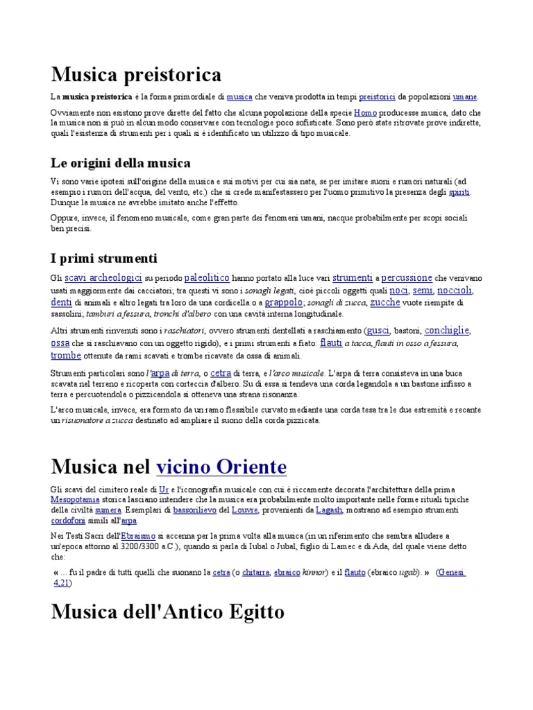 La musica preistorica la forma primordiale di musica che veniva prodotta in tempi preistorici da popolazioni umane. Ovviamente non esistono prove dirette del fatto che alcuna popolazione della specie Homo producesse musica, dato che la musica non si pu in alcun modo conservare con tecnologie poco sofisticate. Sono per state ritrovate prove indirette, quali l'esistenza di strumenti per i quali si identificato un utilizzo di tipo musicale.