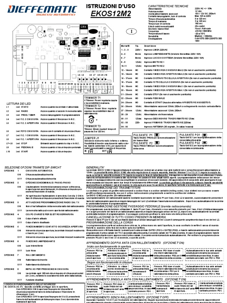 OFF Ad ogni impulso l’automazione si arresterà. Con dip 2 ON in La EKOS 12 M2 può gestire 254 radiocomandi.