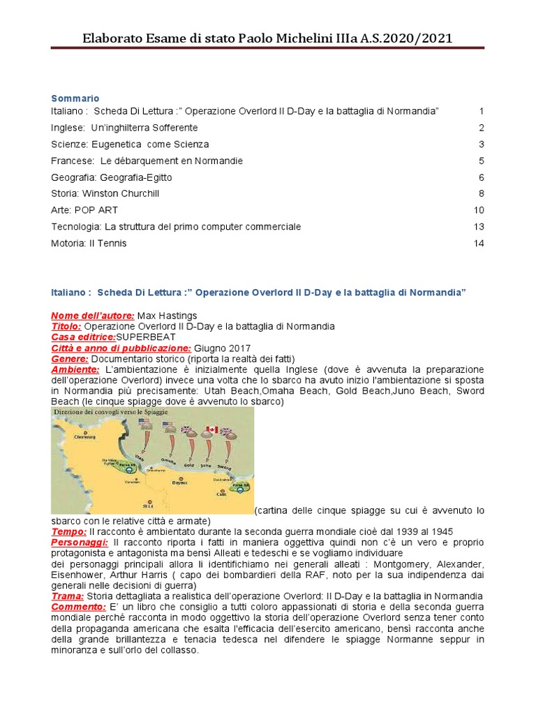 Elaborato Esame di stato Paolo Michelini IIIa A.S.2020/2021