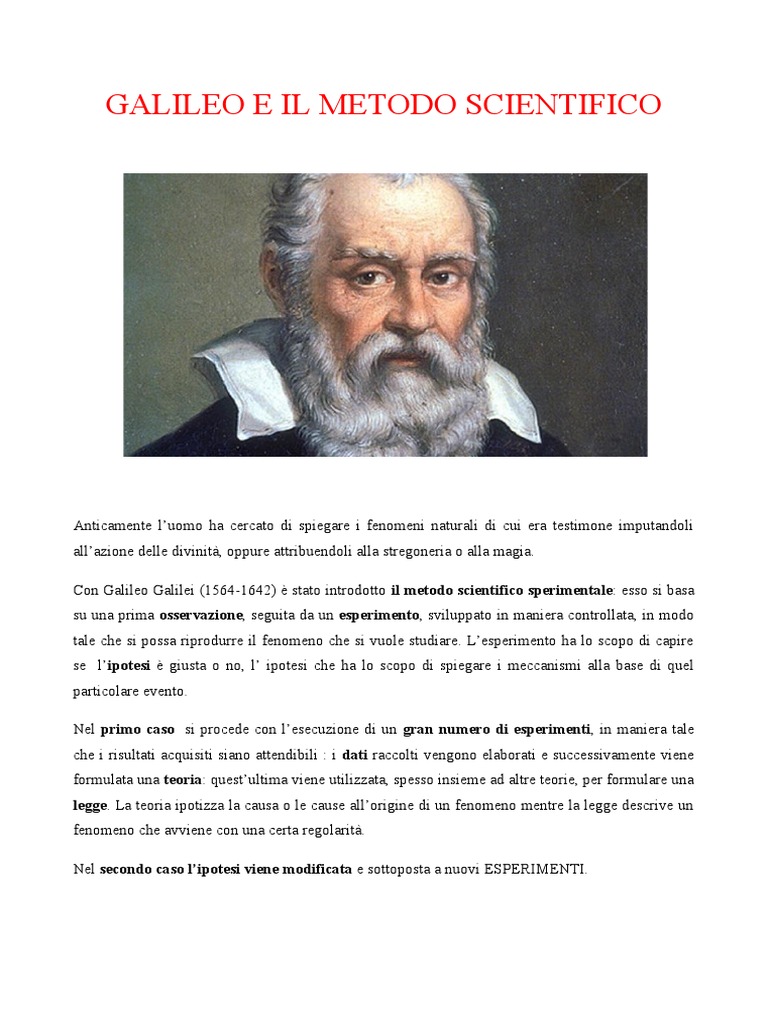 Con Galileo Galilei (1564-1642) è stato introdotto il metodo scientifico sperimentale: esso si basa