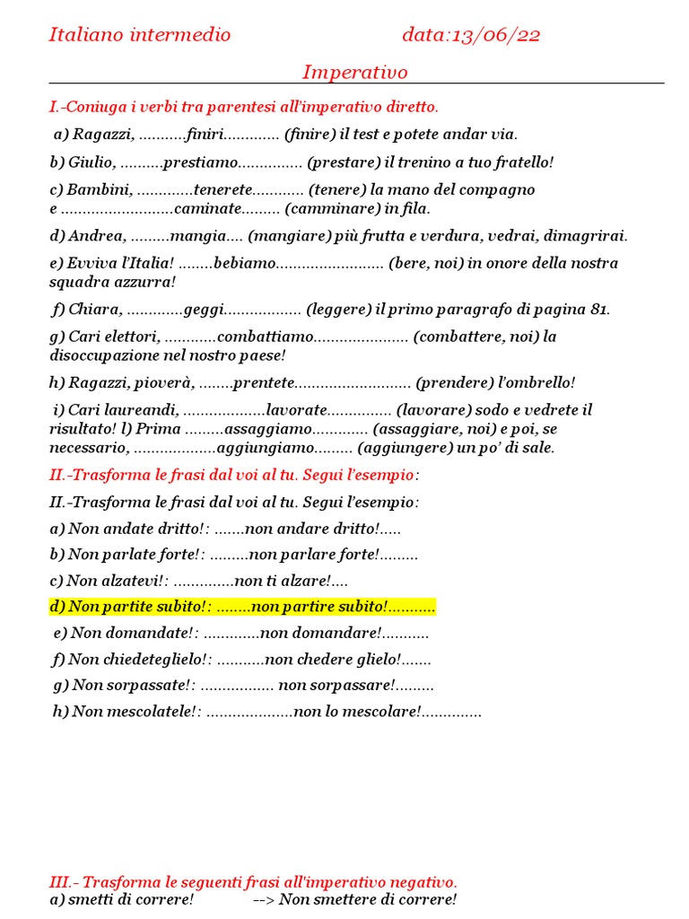 h) Ragazzi, pioverà, ........prentete........................... (prendere) l’ombrello!