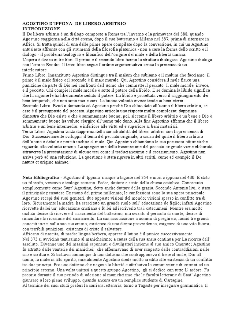 sommamente buono ha voluto elargire all’uomo tale dono. Alla fine Agostino afferma che il libero