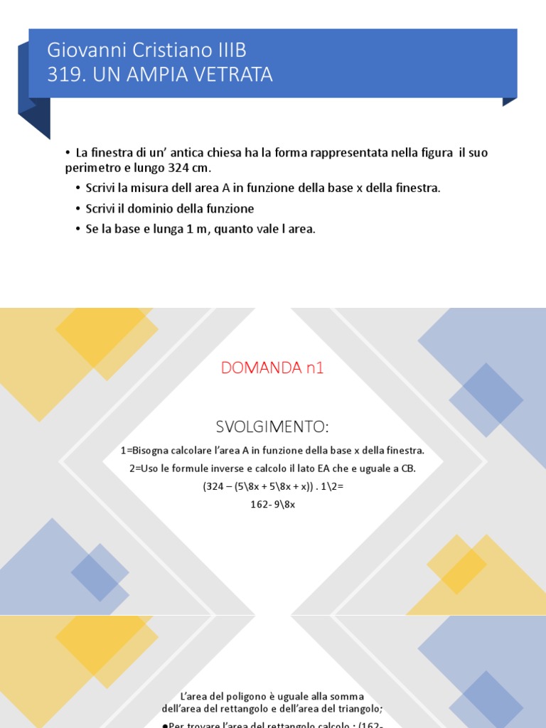 • Scrivi la misura dell area A in funzione della base x della finestra.