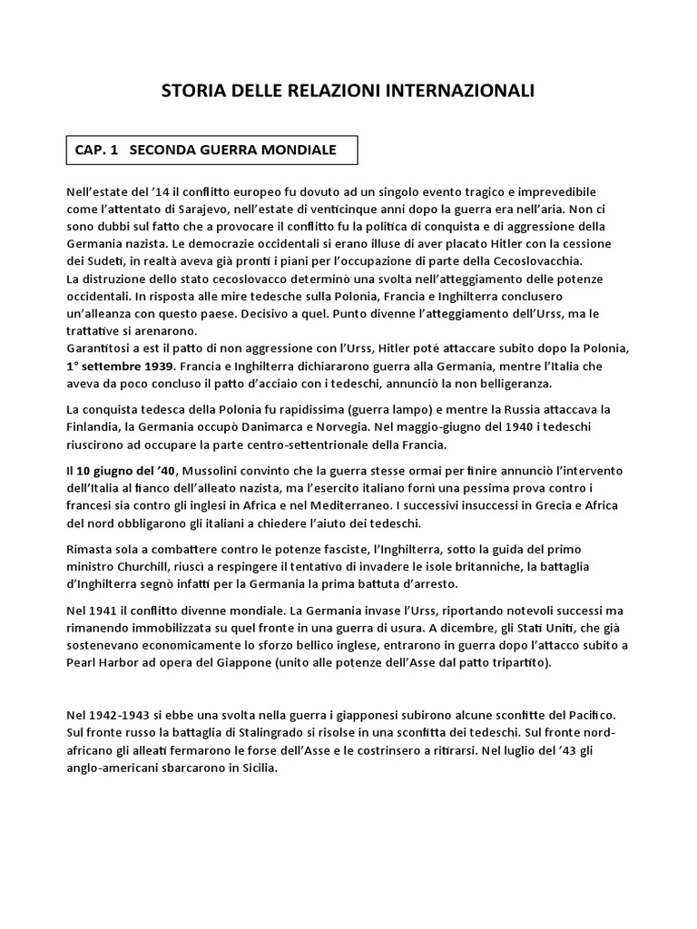 Storia Delle Relazioni Internazionali