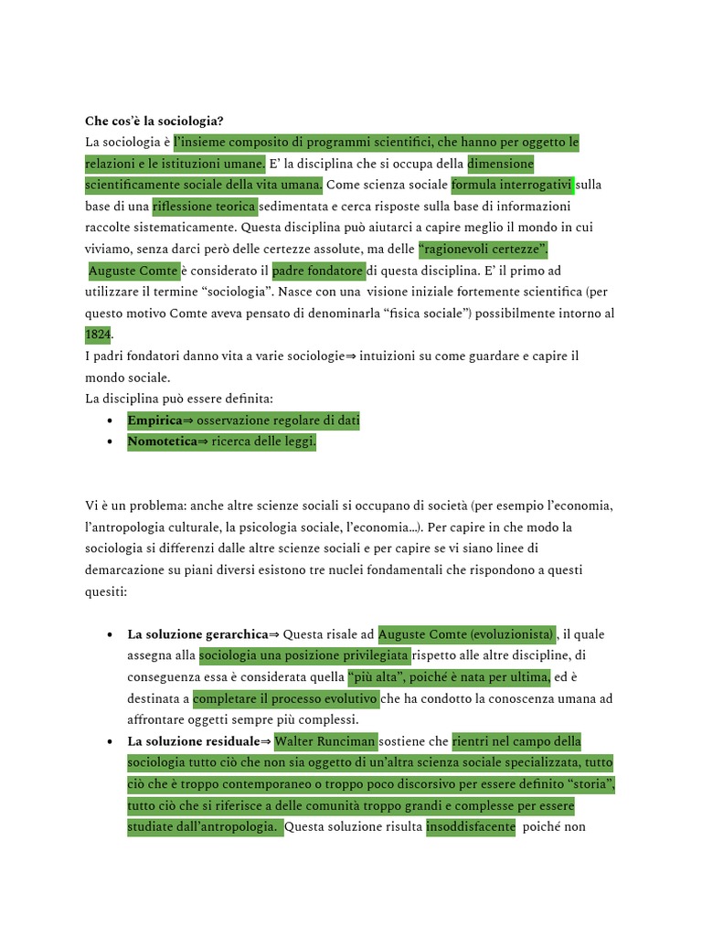 sociologia si differenzi dalle altre scienze sociali e per capire se vi siano linee di