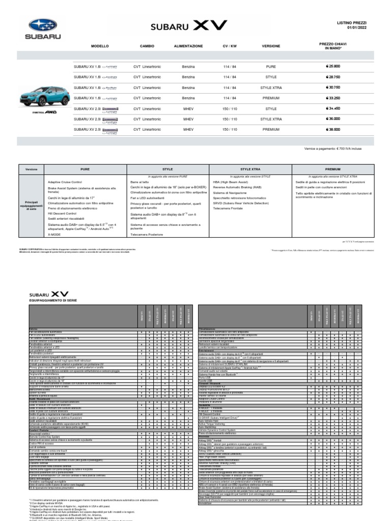 SUBARU XV 2.0i CVT Lineartronic MHEV 150 / 110 STYLE XTRA € 36.000