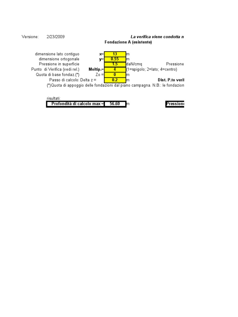 Caso di verifica in un punto di una fondazione unica considerandola come due fondazioni accostate