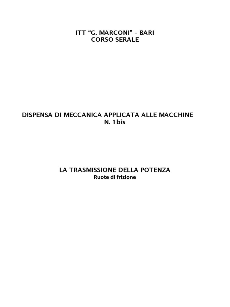 la trasmissione della potenza sia possibile, la forza d’attrito dev’essere sufficiente a