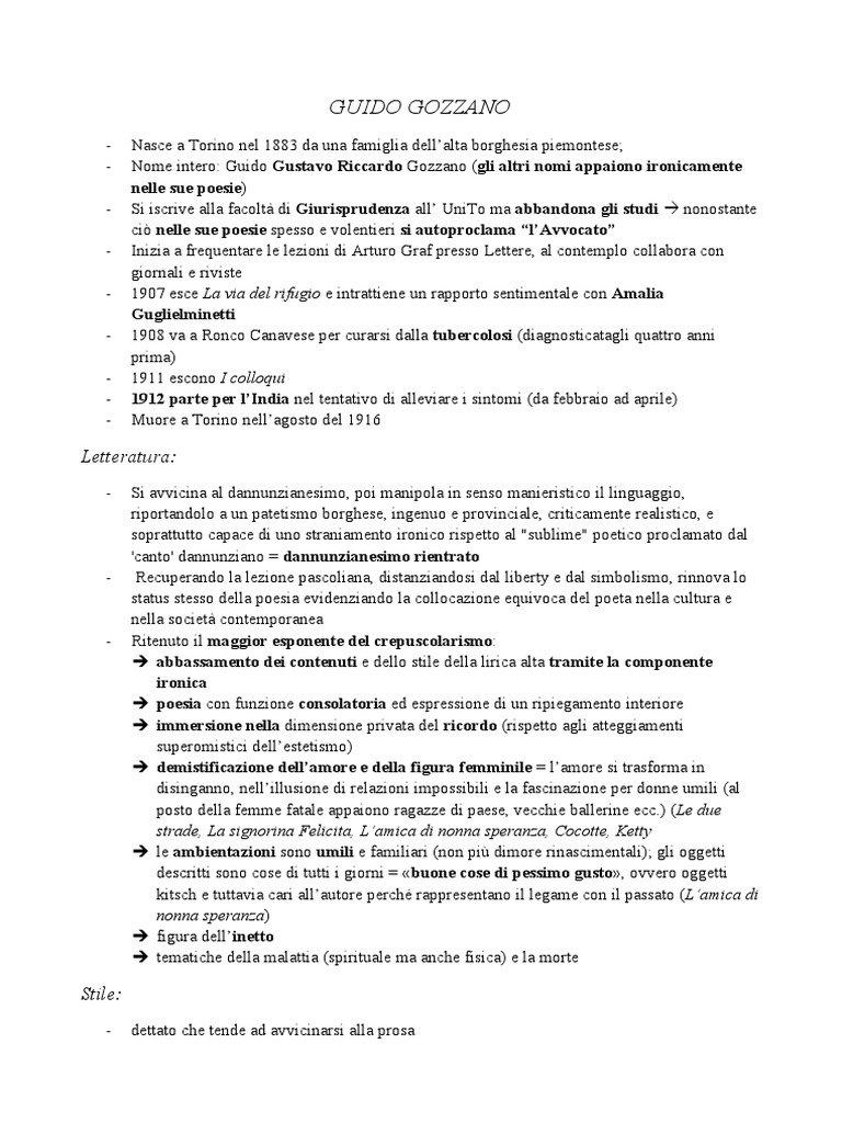- Nome intero: Guido Gustavo Riccardo Gozzano (gli altri nomi appaiono ironicamente
