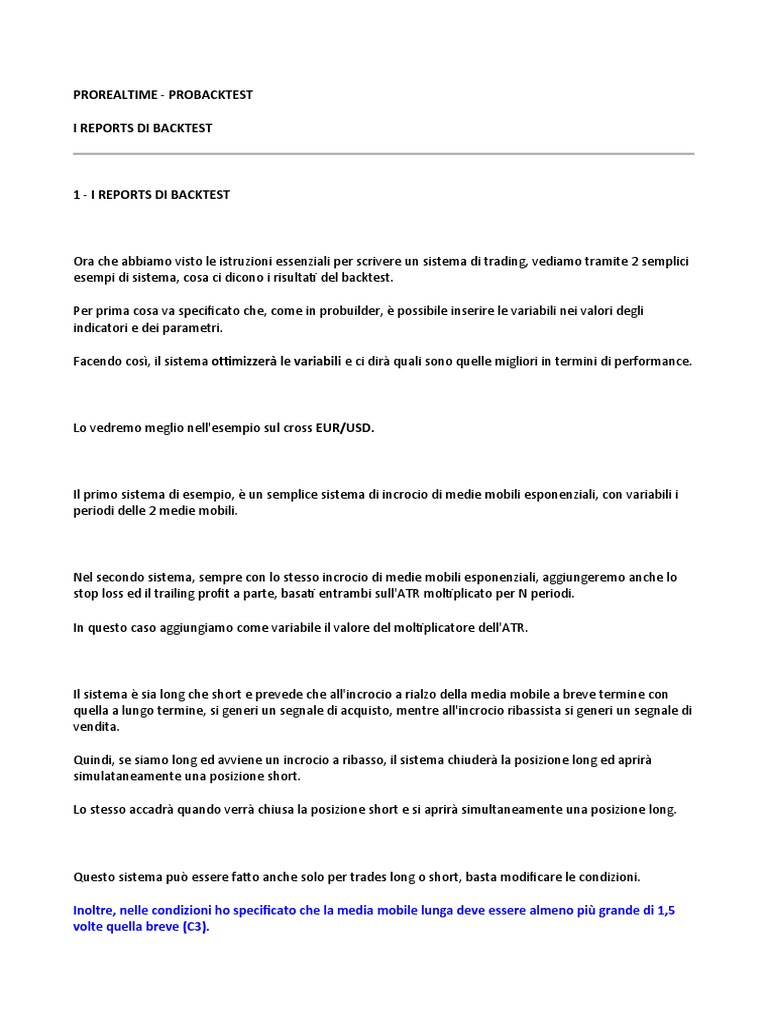 1 - I REPORTS DI BACKTEST