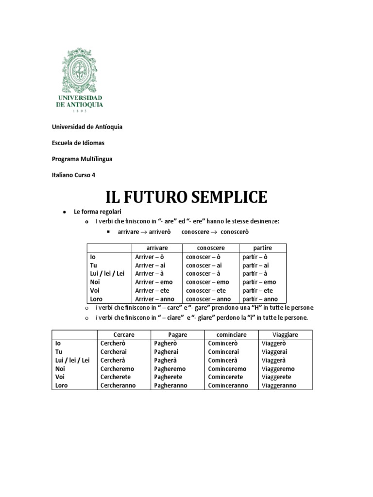 Io Arriver – ò conoscer – ò partir – ò