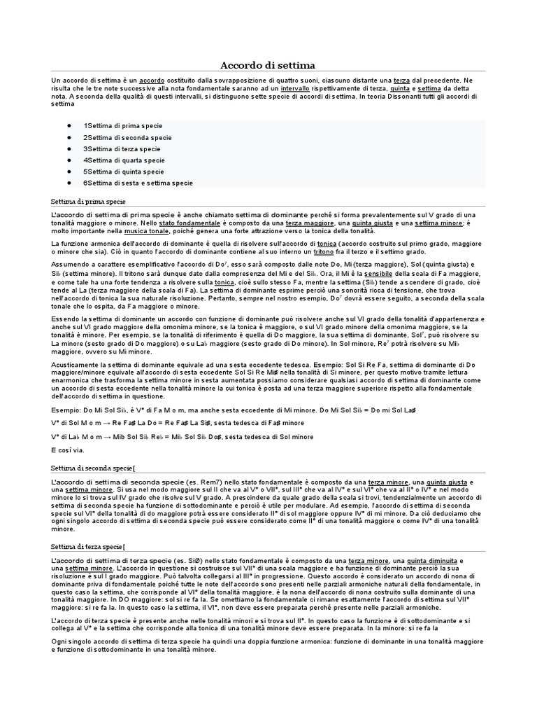 nota. A seconda della qualità di questi intervalli, si distinguono sette specie di accordi di settima. In teoria Dissonanti tutti gli accordi di