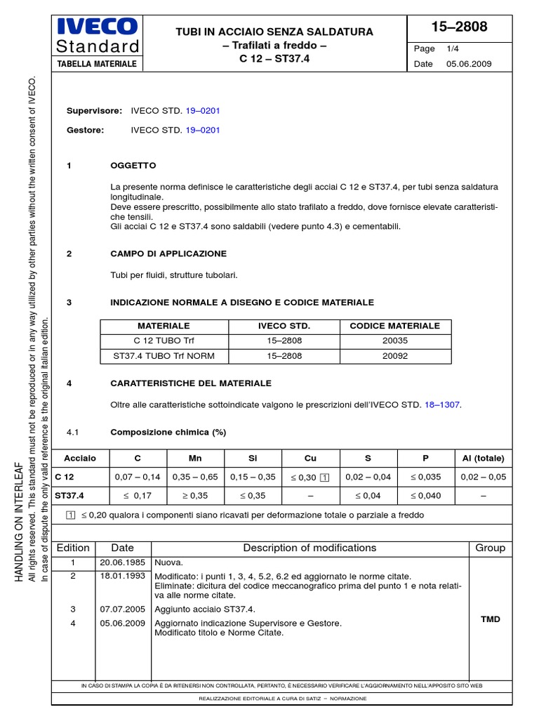 La presente norma definisce le caratteristiche degli acciai C 12 e ST37.4, per tubi senza saldatura