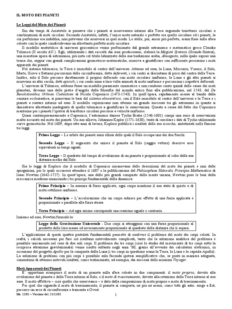 scostandosi mai più di un angolo massimo (28° per Mercurio, 48° per Fig. 1 Moto dei Pianeti.