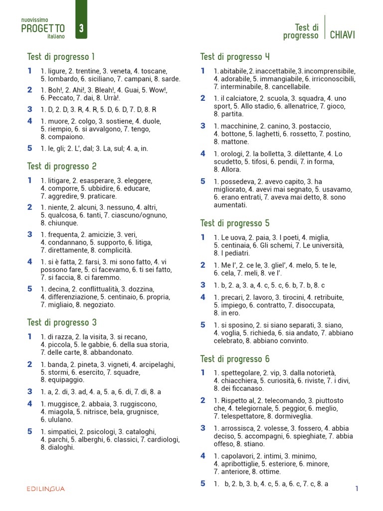Test di progresso 9 3 1. andrei, 2. fosse stata, 3. dovete, 4. vince,