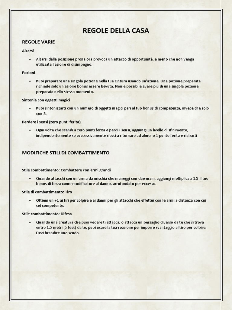 - Tutte le classi acquisiscono anche talenti aggiuntivi ai livelli: 2, 6, 10, 14, 18