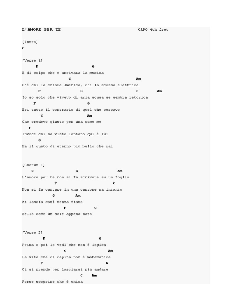 L’AMORE PER TE CAPO 4th fret