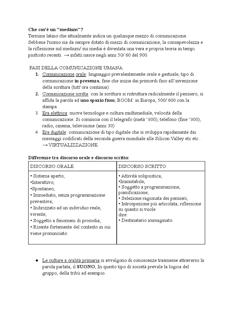 1. Comunicazione orale: linguaggio prevalentemente orale e gestuale, tipo di
