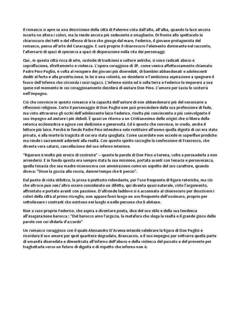 Un romanzo coraggioso con il quale Alessandro D’Avenia intende celebrare la figura di Don Puglisi e