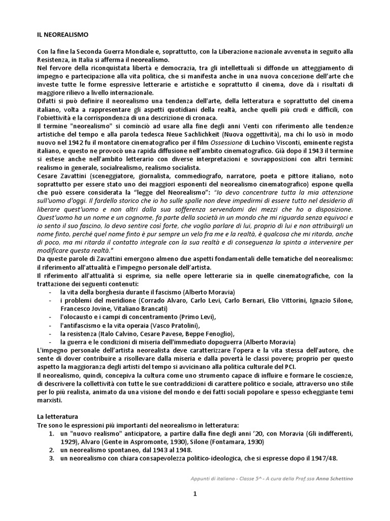 Appunti di italiano - Classe 5^ - A cura della [Link] Anna Schettino