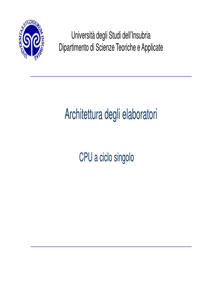 Datapath a singolo ciclo => CPI=1, durata del clock lunga