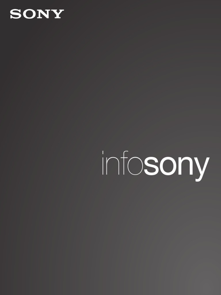 Nessuna parte di questa pubblicazione pu essere riprodotta senza il permesso di SONY EUROPE LIMITED. Sony, a , [Link], 24p True Cinema, Advanced Contrast Enhancer, Advanced Iris, Advanced Iris 2, AccuCORE, ActiForce, Anti-Blur, ATRAC, ATRAC3, BIONZ, BRAVIA, BRAVIA ENGINE, BRAVIA ENGINE EX, BRAVIA ENGINE PRO, BRAVIA Theatre, BRAVIA Theatre Sync, Cinema Black Pro, CD WALKMAN, ClearVid, Clear Voice, CONNECT, Cyber-shot, Digital Cinema Sound, Digital Reality Creation, Direct Stream Digital, Double Anti-Blur, DVDirect, DynaClear Screen, ES, ESPRIT, Exmor, Fontopia, GIGA JUKE, G-Sensor, Handycam, Handycam Station, Hi-MD, Hi-MD WALKMAN, InfoLITHIUM, [Link], LIVE COLOUR CREATION, M2, Memory Stick, Memory Stick Duo, Memory Stick Micro, Memory Stick PRO, Memory Stick PRO Duo, Micro Vault, MiniDisc, MiniDV, Motionflow +100Hz, Motionflow Dark Frame Insertion, My Sony, nav-u, Network WALKMAN, NightShot Plus, PhotoTV HD, Pocket Album, Precision Cinema Progressive, Real Imaging Processor, Remote Commander, S-Diat, S-Force, S-Force Front Surround, S-Force PRO, S-Force PRO Front Surround, S-Master, S-Master PRO, SmartLink, SnapLab, SonicStage, Sony Ericsson Walkman, STAMINA, Super Audio CD, Super Coat 2, Super NightShot, Super SteadyShot, SXRD, TRILUMINOS, UniMatch, USB Photo Viewer, VAIO, Voice Zoom, WALKMAN, WCG-CCFL, X-black, x-DJ, Xplod e [Link], sono marchi registrati di Sony Corporation, Tokio, Giappone. Sony Ericsson un marchio o marchio registrato di Sony Ericsson o utilizzato con lautorizzazione di Sony Corporation o Telefonaktiebolaget LM Ericsson. Il logo Sony Pictures un marchio di Sony Pictures Entertainment, Inc. e PSP sono marchi di Sony Computer Entertainment, Inc. , PlayStation, e PLAYSTATION3 sono marchi registrati e 3LCD un marchio di Seiko Epson Corporation. AVCHD e il logo AVCHD sono marchi di Matsushita Electric Industrial Co. Ltd e di Sony Corporation. BBE e BBE ViVA sono marchi registrati di BBE Sound Inc. Blu-ray Disc e il logo Blu-ray sono marchi di Blu-ray Disc Association. Bluetooth un marchio registrato di Bluetooth SIG. Carl Zeiss, Vario-Sonnar e Vario-Tessar sono marchi di Carl Zeiss. CompactFlash un marchio di SanDisk Corporation, registrato negli Stati Uniti e in altri Paesi. SanDisk Corporation una concessionaria del marchio. DCDi un marchio di Faroudja Laboratories, Inc. DivX un marchio registrato di DivX Networks Inc. DLNA un marchio di Digital Living Network Alliance. Dolby, AAC, ProLogic e il simbolo della doppia D sono marchi registrati di Dolby Laboratories. DTS, DTS-HD e DTS Digital Surround sono marchi registrati di Digital Theater Systems, Inc. DVB un marchio registrato di DVB Project. Faroudja un marchio di Genesis Microchip Inc. Il logo Full HD un marchio. Gracenote MusicID un marchio di Gracenote, Inc. GUIDE Plus+ un marchio registrato di Gemstar Development Corporation. I loghi HD ready, HD ready 1080p e HD TV sono marchi di EICTA. HDMI, il logo HDMI e High-Definition Multimedia Interface sono marchi o marchi registrati di HDMI Licensing LLC. Intel e Pentium sono marchi registrati di Intel Corporation o delle relative controllate negli Stati Uniti e in altri Paesi. IPod, iPhone e iTunes Plus sono marchi di Apple Inc., registrati negli Stati Uniti e in altri Paesi. Java, il logo della tazzina di caff e tutti i marchi basati su Java sono marchi o marchi registrati di Sun Microsystems, Inc. negli Stati Uniti o in altri Paesi. NVIDIA e GeForce sono marchi registrati o marchi di NVIDIA Corporation negli Stati Uniti e/o in altri Paesi. PictBridge un marchio di CIPA. SRS, il simbolo SRS, TruSurround, TruSurround XT, TruBass e Dialog Clarity sono marchi di SRS Labs Inc. USB un marchio di Universal Serial Bus Association. VESA un marchio di Video Electonics Standards Association. Wi-Fi un marchio registrato di Wi-Fi Alliance. Windows, il logo Windows, Windows Media, Windows Vista, Windows XP e Microsoft sono marchi o marchi registrati di Microsoft Corporation negli Stati Uniti e/o in altri Paesi. Tutti gli altri marchi sono di propriet dei rispettivi titolari. Le immagini degli screenshot dei prodotti allinterno della presente brochure si intendono a fini puramente illustrativi. Il copyright non pu essere violato. Le disposizioni legislative relative al copyright devono essere applicate al materiale protetto da copyright. Si raccomanda di verificare i diritti di fruizione prima di diffondere tale materiale. La diffusione, la distribuzione e la condivisione non autorizzata di materiale protetto da copyright sono perseguibili penalmente. Le informazioni contenute nella brochure sono veritiere al momento della stampa. Tuttavia, piccole modifiche di produzione legate alla politica societaria finalizzata al miglioramento attraverso la ricerca e la progettazione potrebbero non essere indicate nelle specifiche. Errori e omissioni sono esenti dallimpegno di veridicit. 2011, se non altrimenti indicato da SONY EUROPE LIMITED - Sede Secondaria Italiana. vietata la riproduzione di qualsiasi parte di questa pubblicazione senza il previo consenso delleditore. 36 of 37