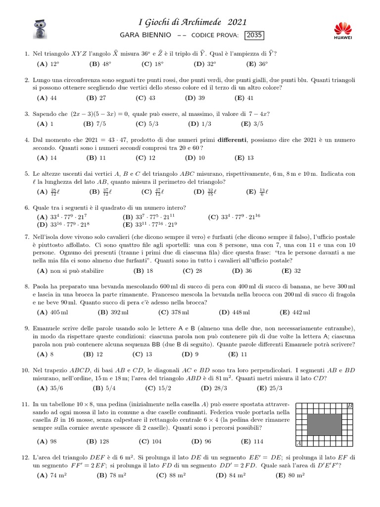 Giochi di Archimede 2021 - GARA BIENNIO