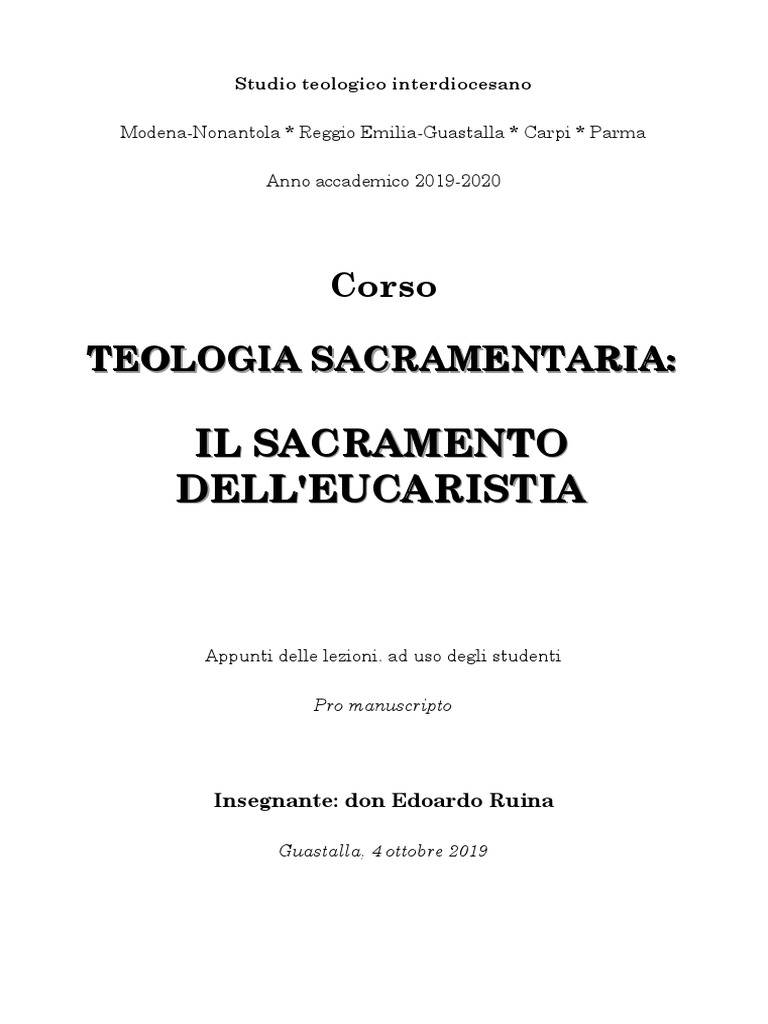 Teologia dogmatica: IL SACRAMENTO DELL’EUCARISTIA - Dispensa per gli studenti