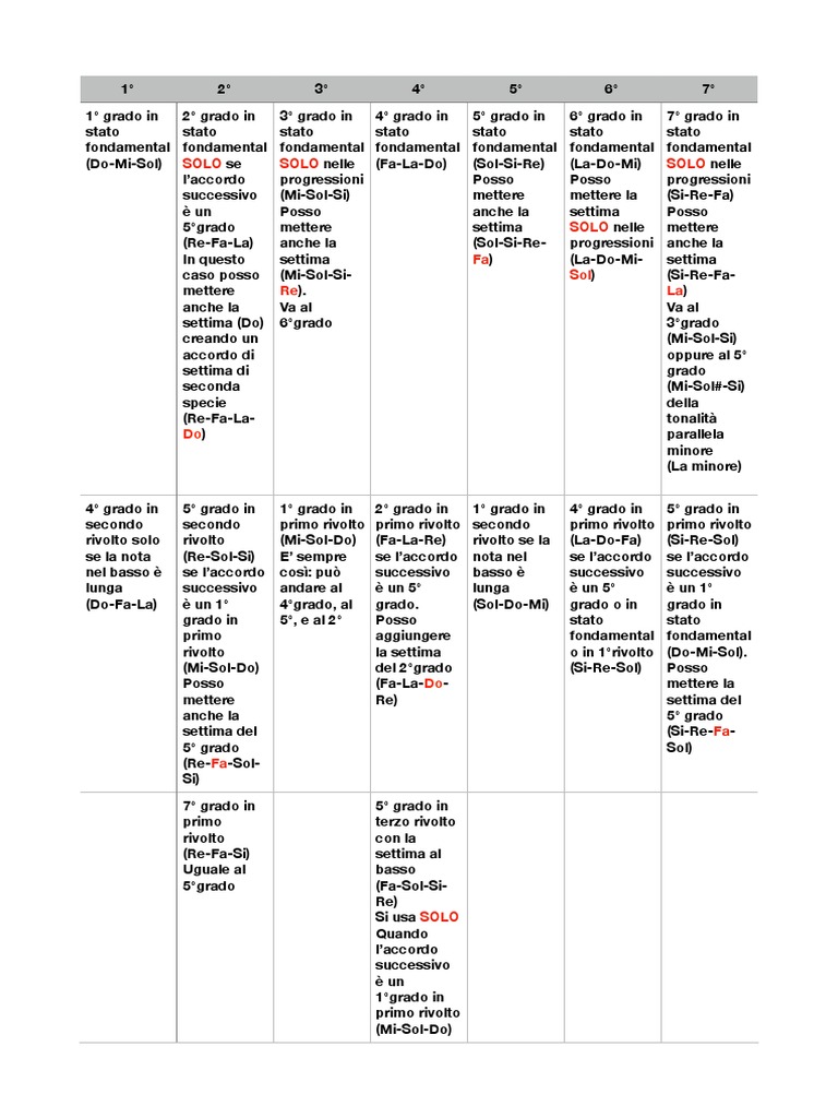 (Do-Fa-La) è un 1° 4°grado, al grado. (Sol-Do-Mi) grado o in grado in