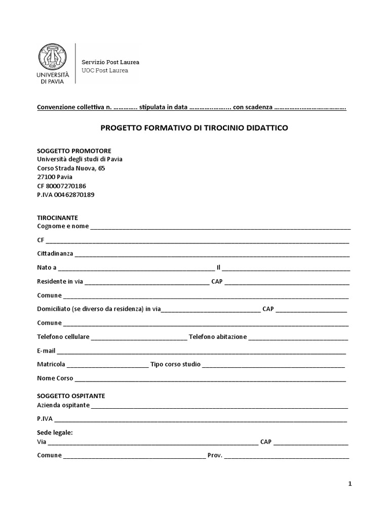 Progetto di tirocinio approvato dal tutore universitario Prof./Dott. ________________________________