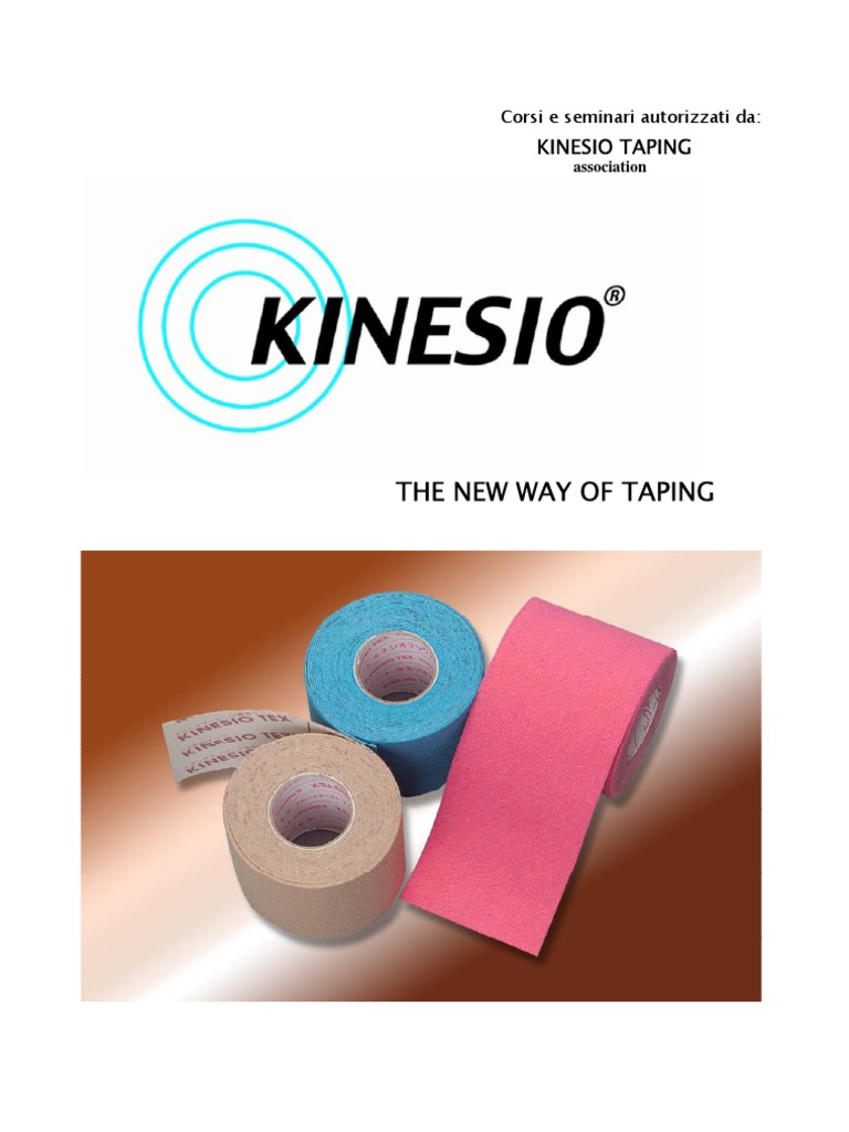 I corsi previsti dal programma KINESIO TAPING sono cos organizzati: CORSO BASE CORSO 1 CORSO 2 CORSO 3 6 ORE 12 ORE 12 ORE 12 ORE