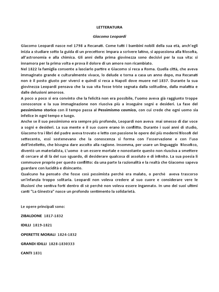giovinezza Leopardi pensava che la sua vita fosse triste segnata dalla solitudine, dalla malattia e