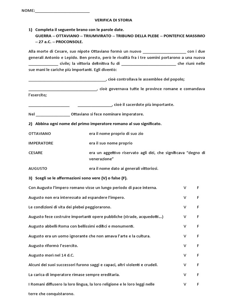 2) Abbina ogni nome del primo imperatore romano al suo significato.
