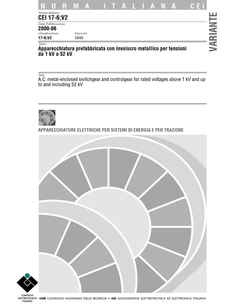Norma Italiana CEI 17-6;V2 Pubblicazione Variante Carattere Doc.