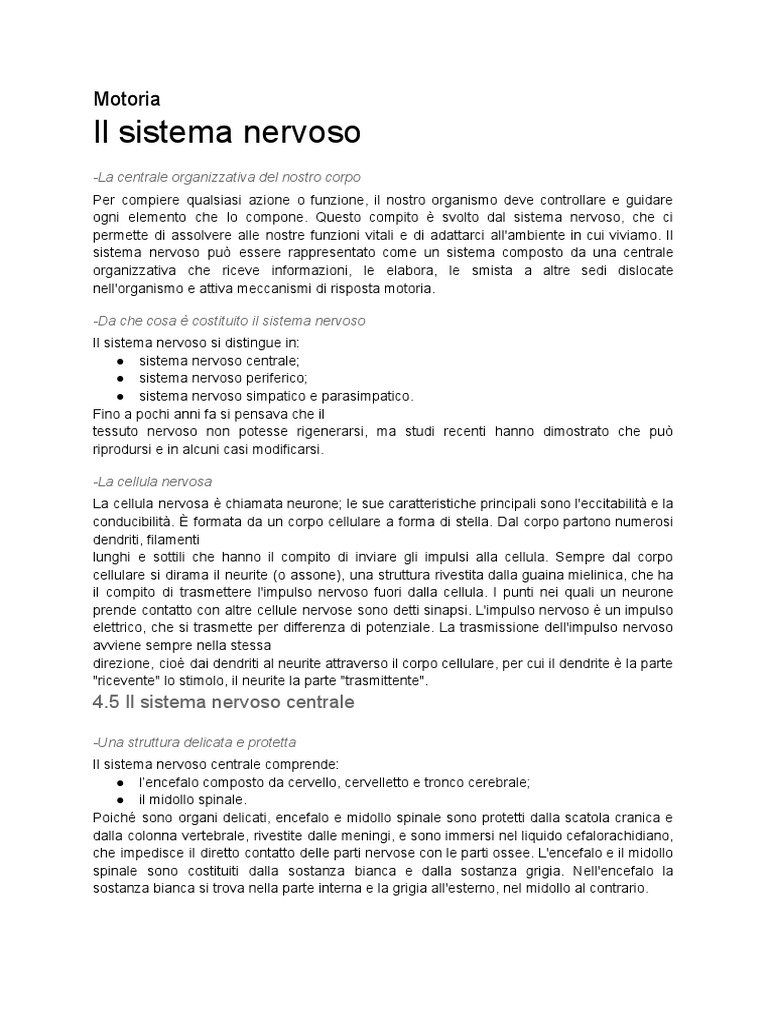 ogni elemento che lo compone. Questo compito è svolto dal sistema nervoso, che ci