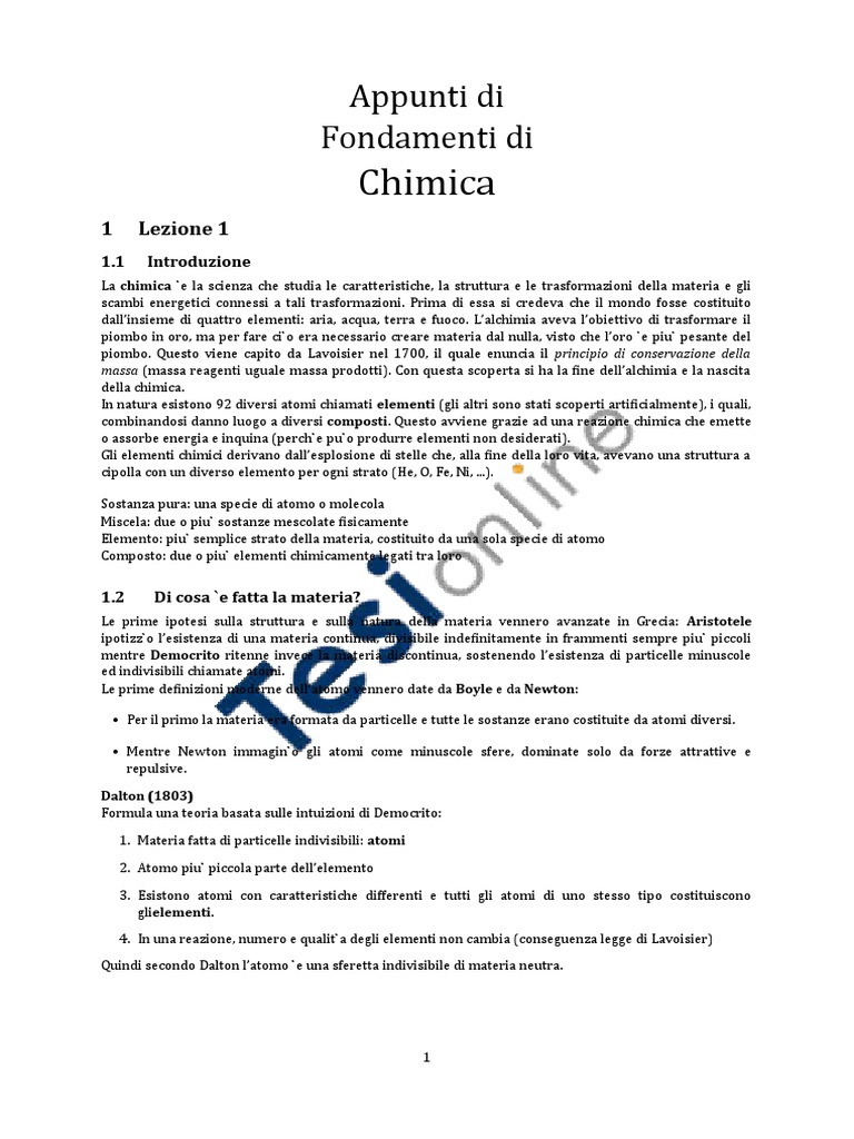 La chimica `e la scienza che studia le caratteristiche, la struttura e le trasformazioni della materia e gli