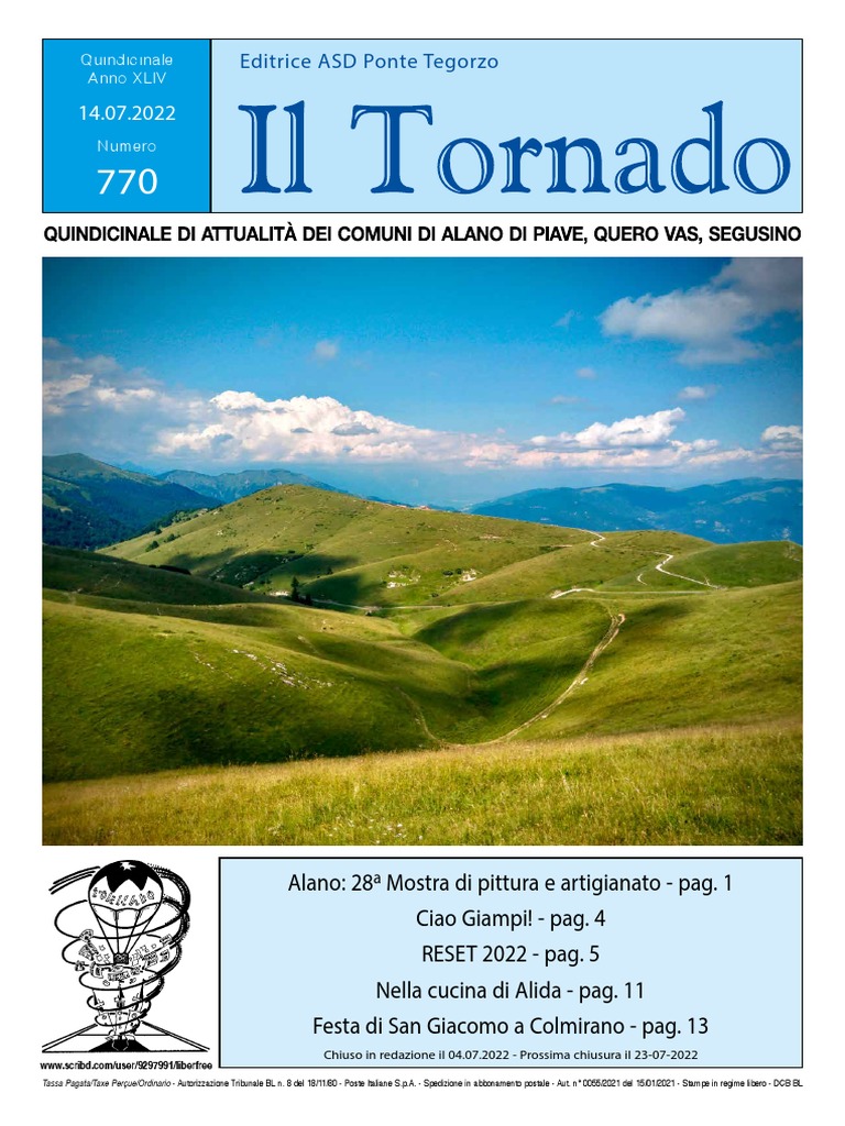 IL TORNADO Sede: Via Nazionale, 25 - 32031 FENER-ALANO di PIAVE (BL). DIRETTORE RESPONSABILE: Cesare Turra. DIRETTORE OPERATIVO: Mauro Mazzocco EDITORE ASD Ponte