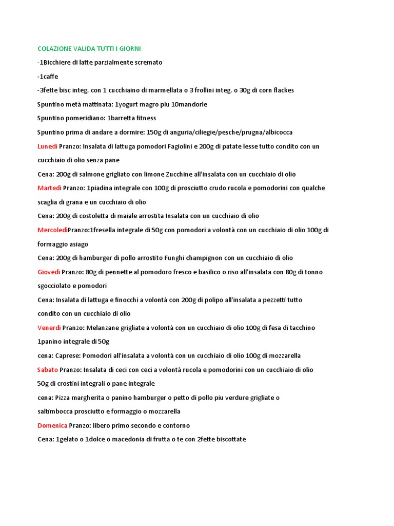 MercoledìPranzo:1fresella integrale di 50g con pomodori a volontà con un cucchiaio di olio 100g di